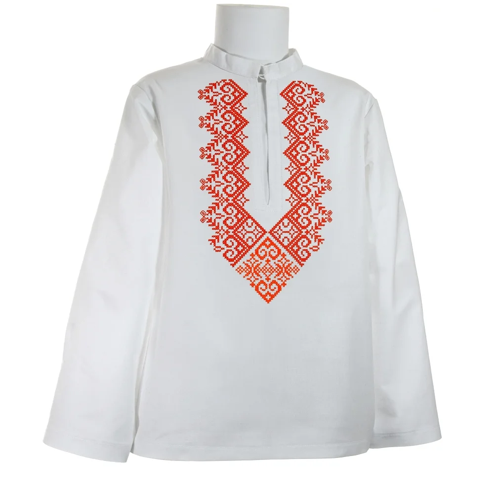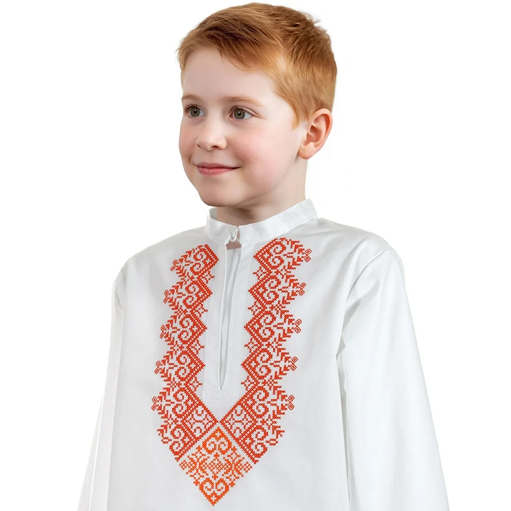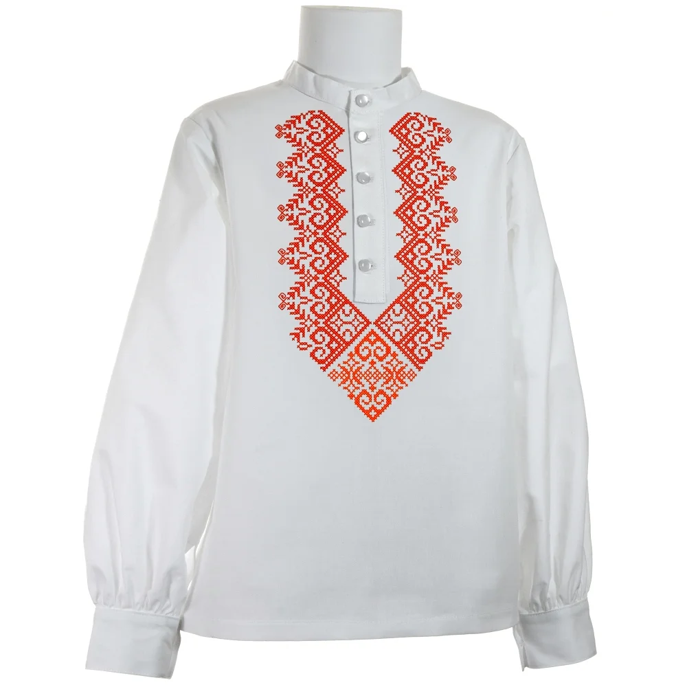 Detská chlapčenská krojová košeľa "MATÚŠKO" je zdobená na hrudi krížikovou výšivkou.
