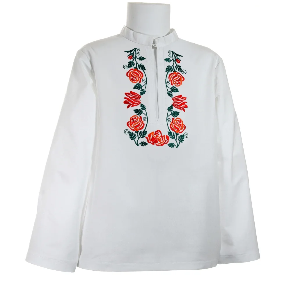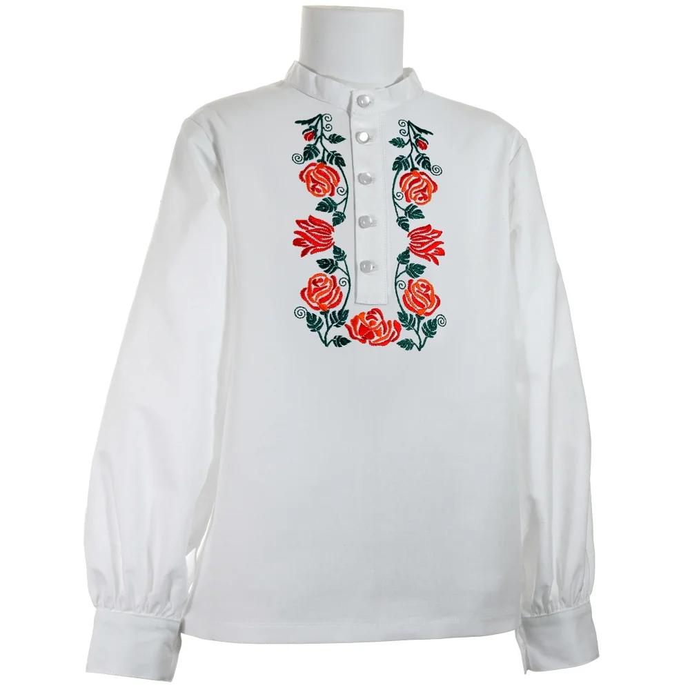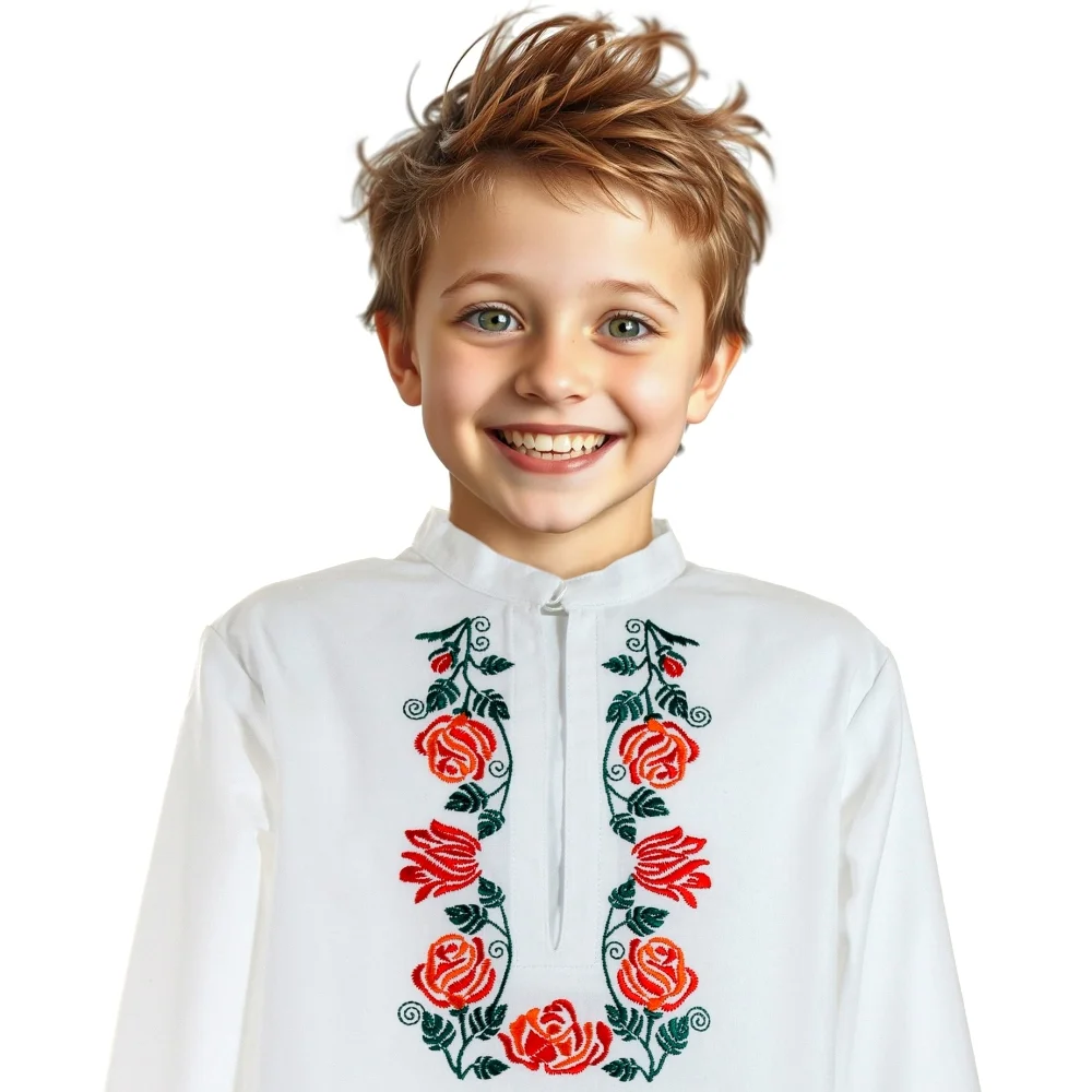 Detská chlapčenská krojová košeľa "Emilko" je zdobená na hrudi hladkovanou výšivkou.