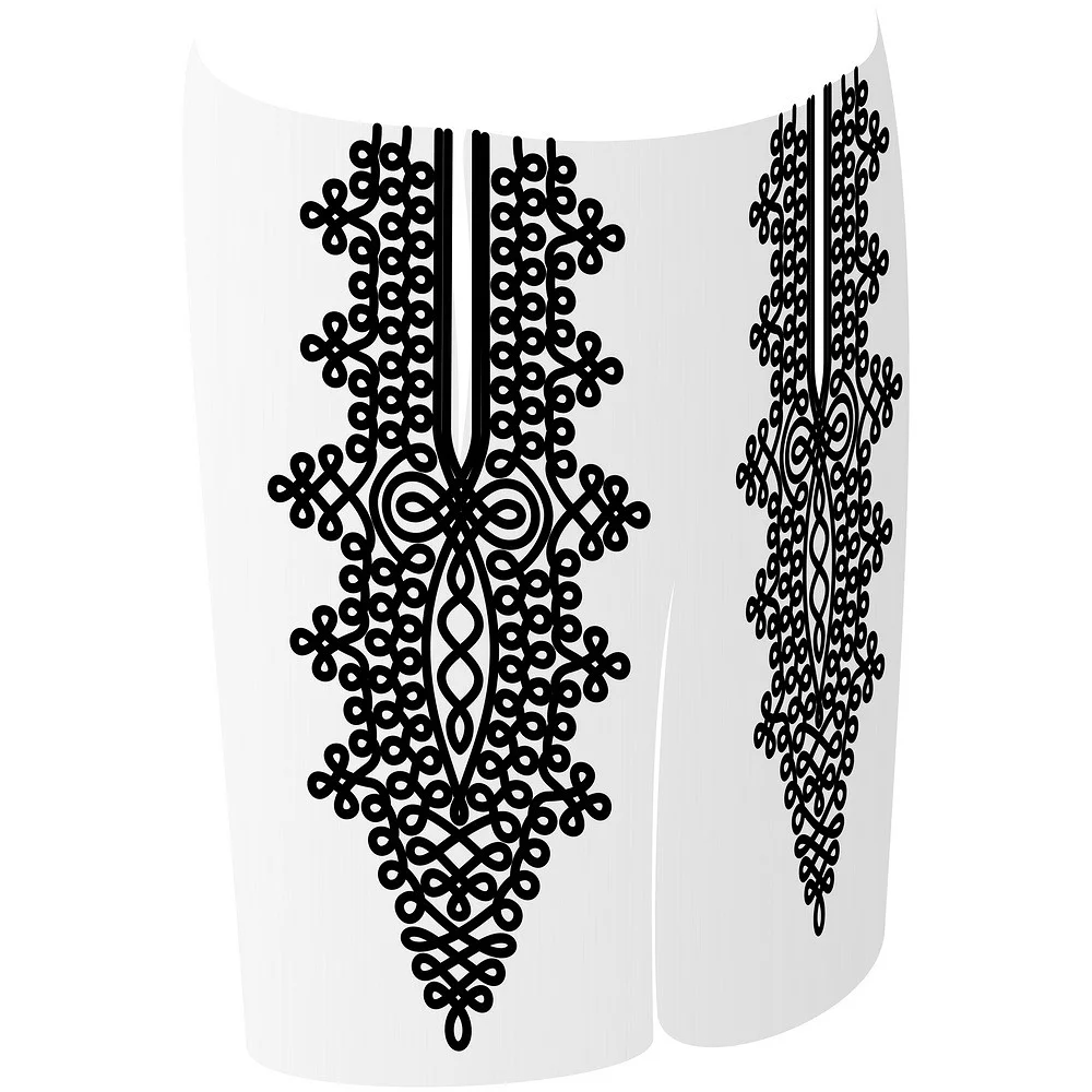 Zdobenie je realizované našitou pletacou priadzou, väčšinou čiernej farby. Rozšírené boli hlavne v bohatých kopaničiarskych oblastiach dolného Považia, obce Kubrá a Dubodiel. Zastúpenie majú aj na Šariši a v niekoľkých lokalitách dolného Spiša.