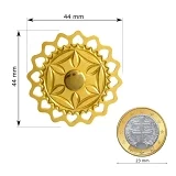 Zdobenie ľudovej opaskovej puklice je prevedené rytím, gravírovaním a záverečným leštením do zrkadlového lesku.