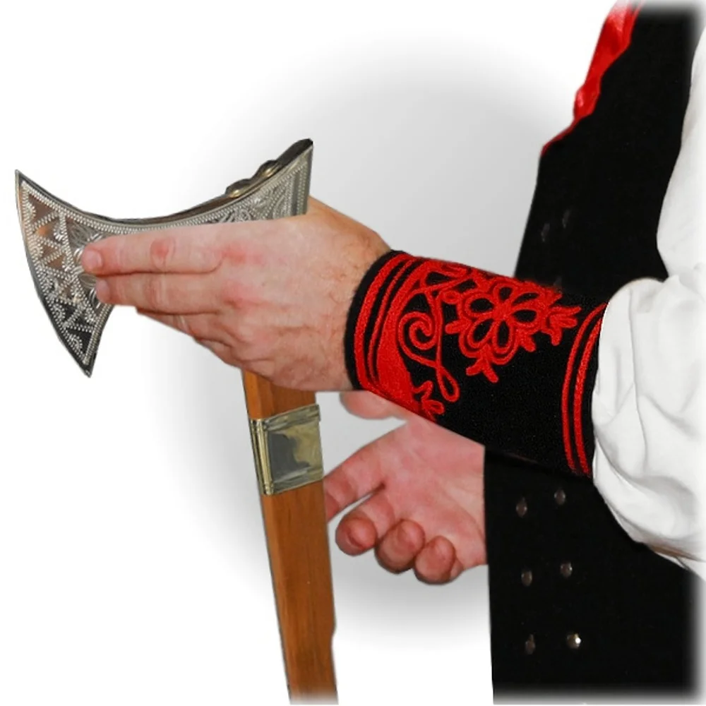 zapastky ľudového kroja na Šariši, zápestky k mužskej ľudovej košeli, zápestky k ľudovému odevu. Zápästky ľudového kroja na Šariši, zápestky k mužskej ľudovej košeli, zapestky k mužskému ľudovému odevu. Vlnené zápästky ku kroju